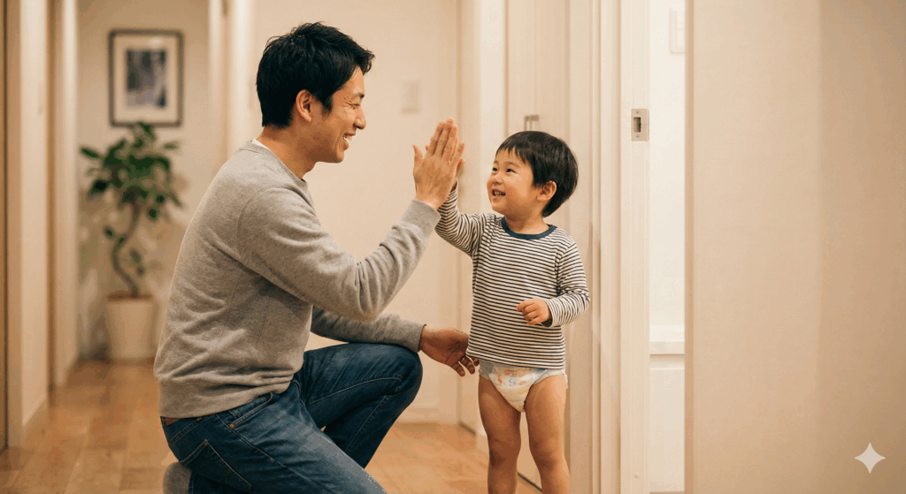 ポイント: 失敗しても「ダメ!」と叱らないこと。「出ちゃったね、次はトイレに行こうね」と事実だけを伝え、成功した時は大袈裟なほど褒めましょう。