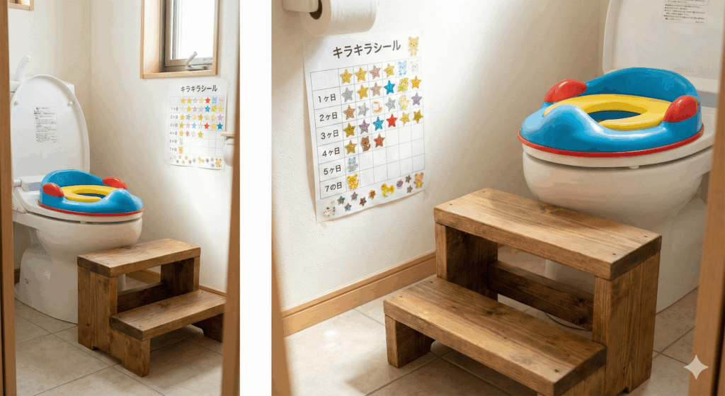 - ご褒美シール: トイレに座れたら1枚、成功したらキラキラシール!視覚的な達成感は子供にとって大きな喜びです。