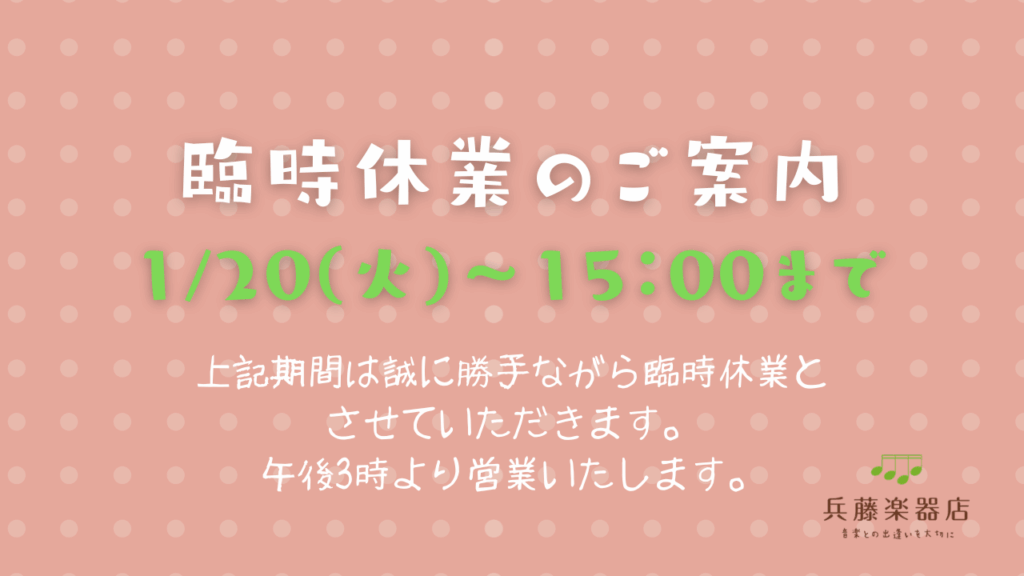いつもご利用頂き有難うございます。誠に勝手ながら、下記日程を休業とさせて頂きます。 1月20日(火)11:00~15:00まで 午後3時より平常通り営業致します。 ご不便をおかけしますが、何卒ご理解のほど宜しくお願い致します。